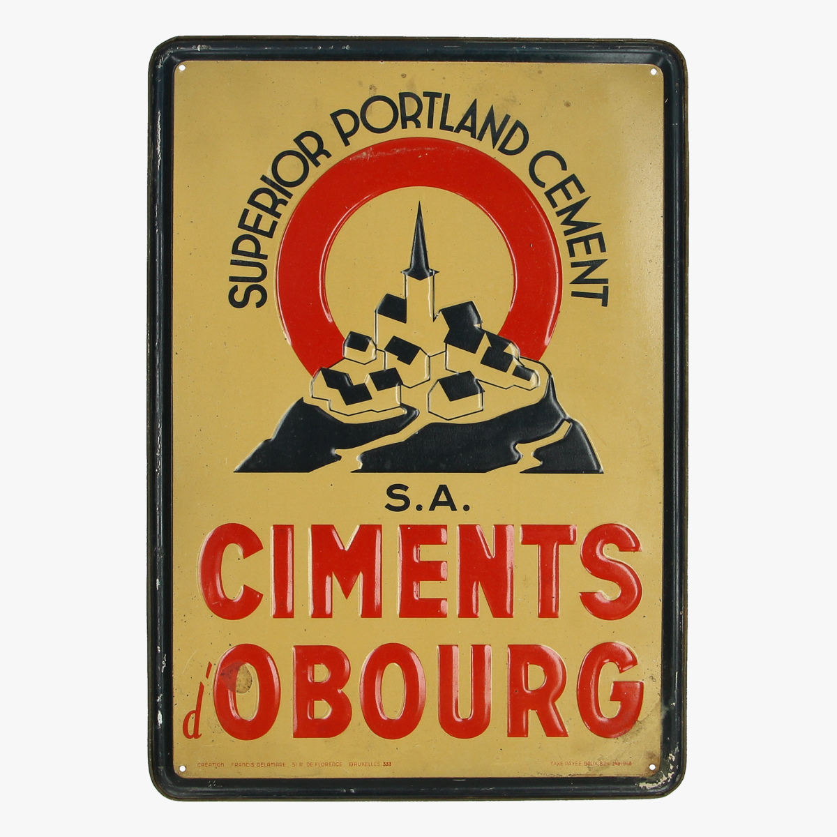 blikken reclame bordje 1948 superior portland cement S.A CIMENTS d' OBOURG